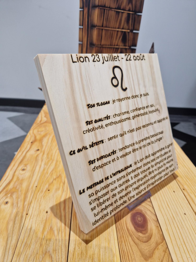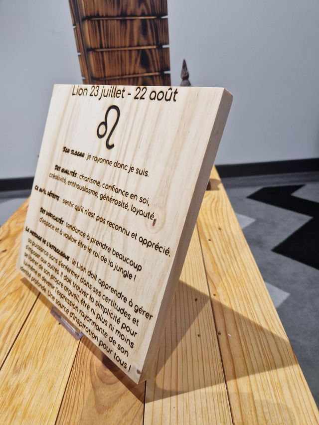 Le bois est gravé au laser (brûlé et légèrement creusé).